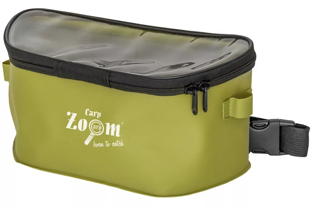 Derékra csatolható EVA anyagból készült csalizó övtáska, mely kényelmessé teszi az etetést és csalizást. Használatával hajladozás nélkül, végig a célra koncentrálva, pontosan becsúszlizható az etetésre szánt bojli, pellet, szemestakarmány vagy éppen csonti. Fedele átlátszó, zipzárral zárható, így tartalma szállítás alkalmával sem ömlik ki belőle.