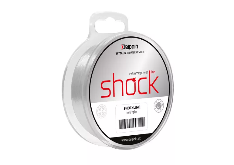 A szlovákiai Delphin gyártmányú sokkoló zsinór végelőkeként használatos. Lehetővé teszi a csalik bedobását a rövid idejű túlterhelés során bekövetkező szakadás kockázata nélkül. A SHOCK LINE modell alapját ütésálló mag képezi. A standard nejlonzsinórokhoz képest sokkal jobban ellenáll a kopásnak. Emiatt kiválóan alkalmas sok kagylót, éles követ stb. tartalmazó vizekbe.