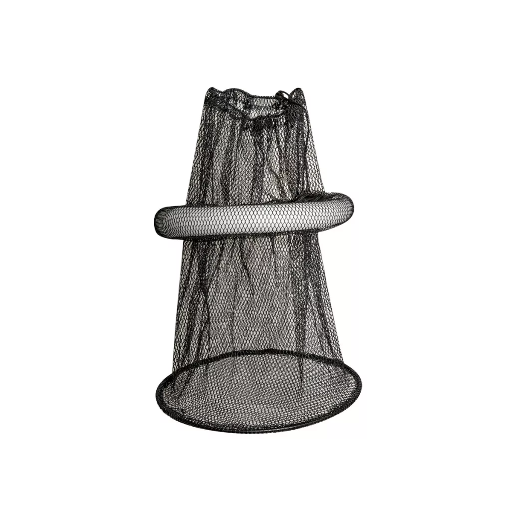 A háló anyaga erősített és gumírozott kivitelű hálószövet 7x10 mm-es lyukbőséggel, a tetején lévő akasztó alatt pedig egy szivacsos lebegtető lett beillesztve, így csónakos horgászatoknál is tökéletes alkalmatosság lesz, könnyen kivehetőek belőle a csalizásra szánt halak.